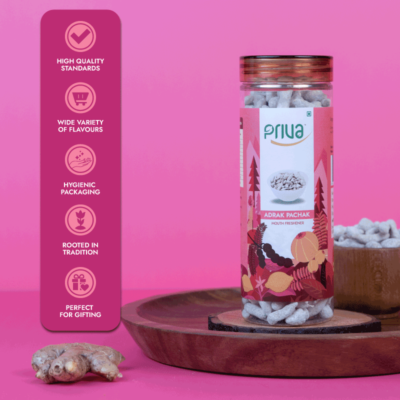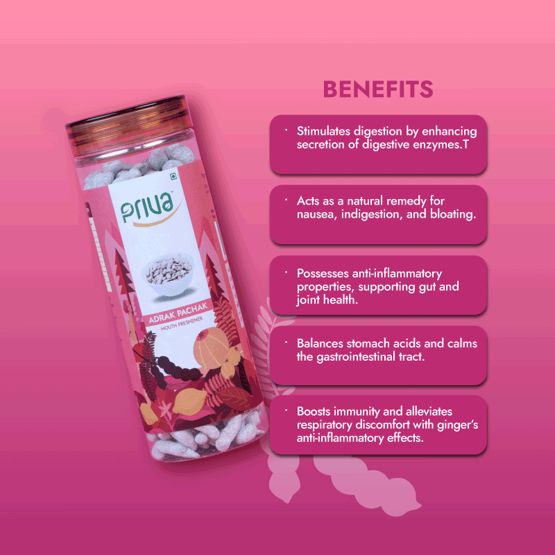 Priva’s Adrak Pachak is a traditional Ayurvedic digestive booster made from fresh ginger, iodized salt, citric acid (INS-330), and mineral salts. This zesty, spicy pellet supports digestion, relieves nausea, and reduces inflammation, making it an effective post-meal remedy.